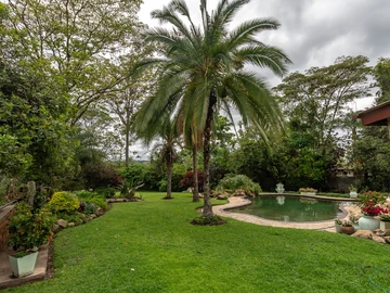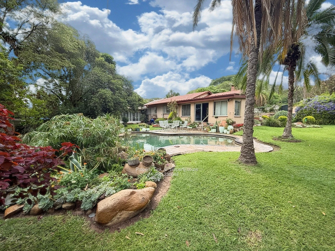 The highlight of the property is the stunning landscaped garden, with a lovely swimming pool in the centre, ideal for or unwinding. For security, there is an alarm system and electric gate ensuring peace of mind. Additional features include a solar system, staff quarters, an electric and solar geysers, 2 x 5000-litre water tanks, a storeroom / workshop room, a small generator room, carports for two vehicles.